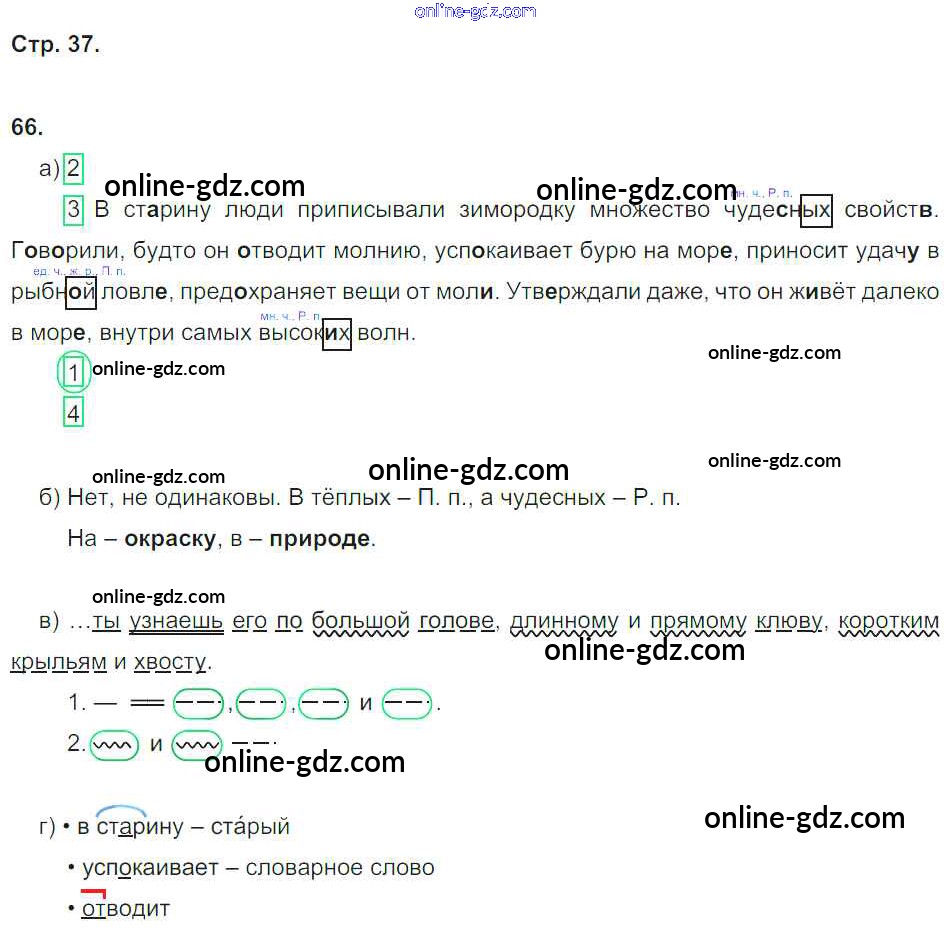 Готовые домашние задания по Русскому языку за 4 класс Рабочая тетрадь Нечаева, Воскресенская 2014 - Часть 1. Страницы тетради 37