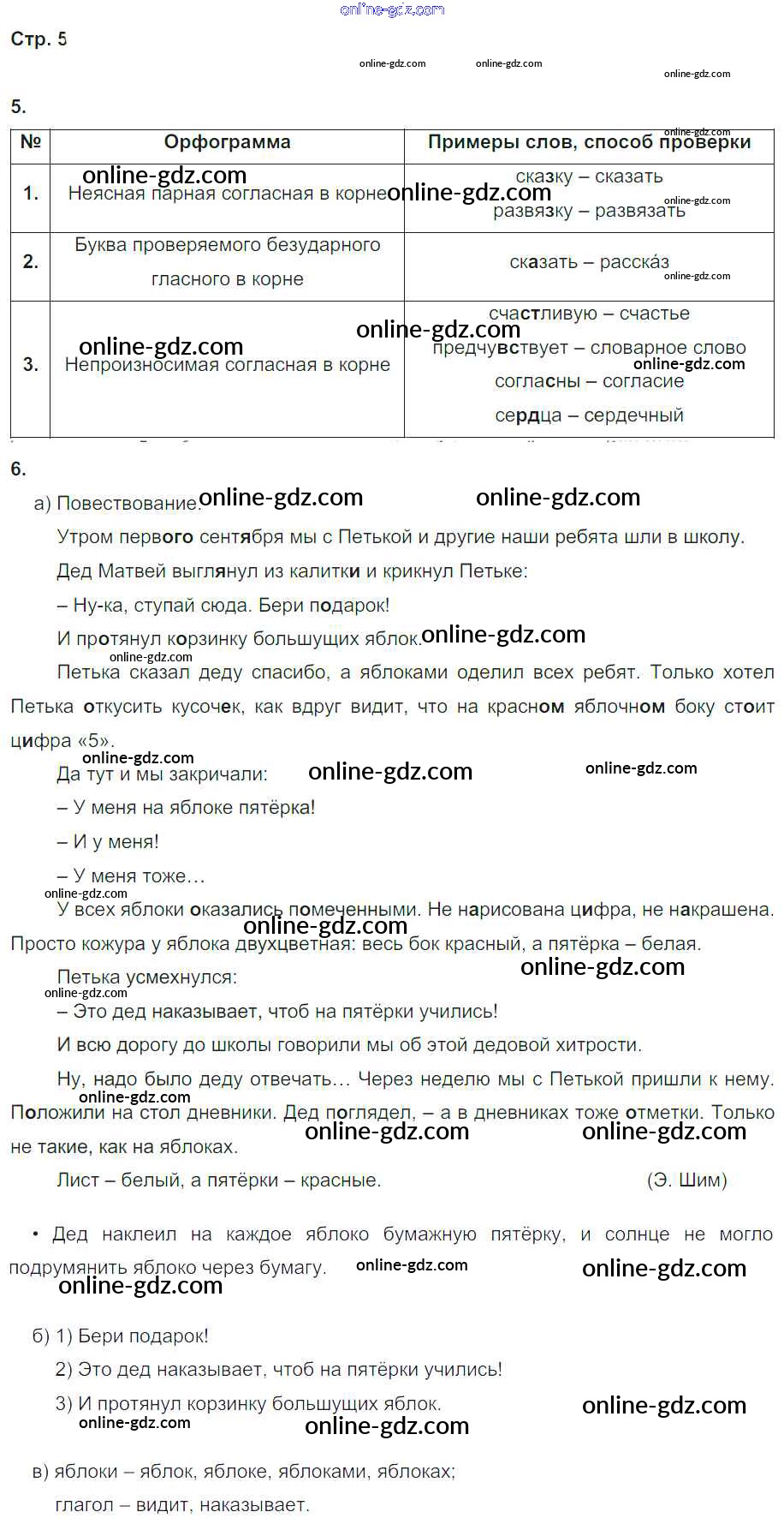 Готовые домашние задания по Русскому языку за 4 класс Рабочая тетрадь Нечаева, Воскресенская 2014 - Часть 1. Страницы тетради 5