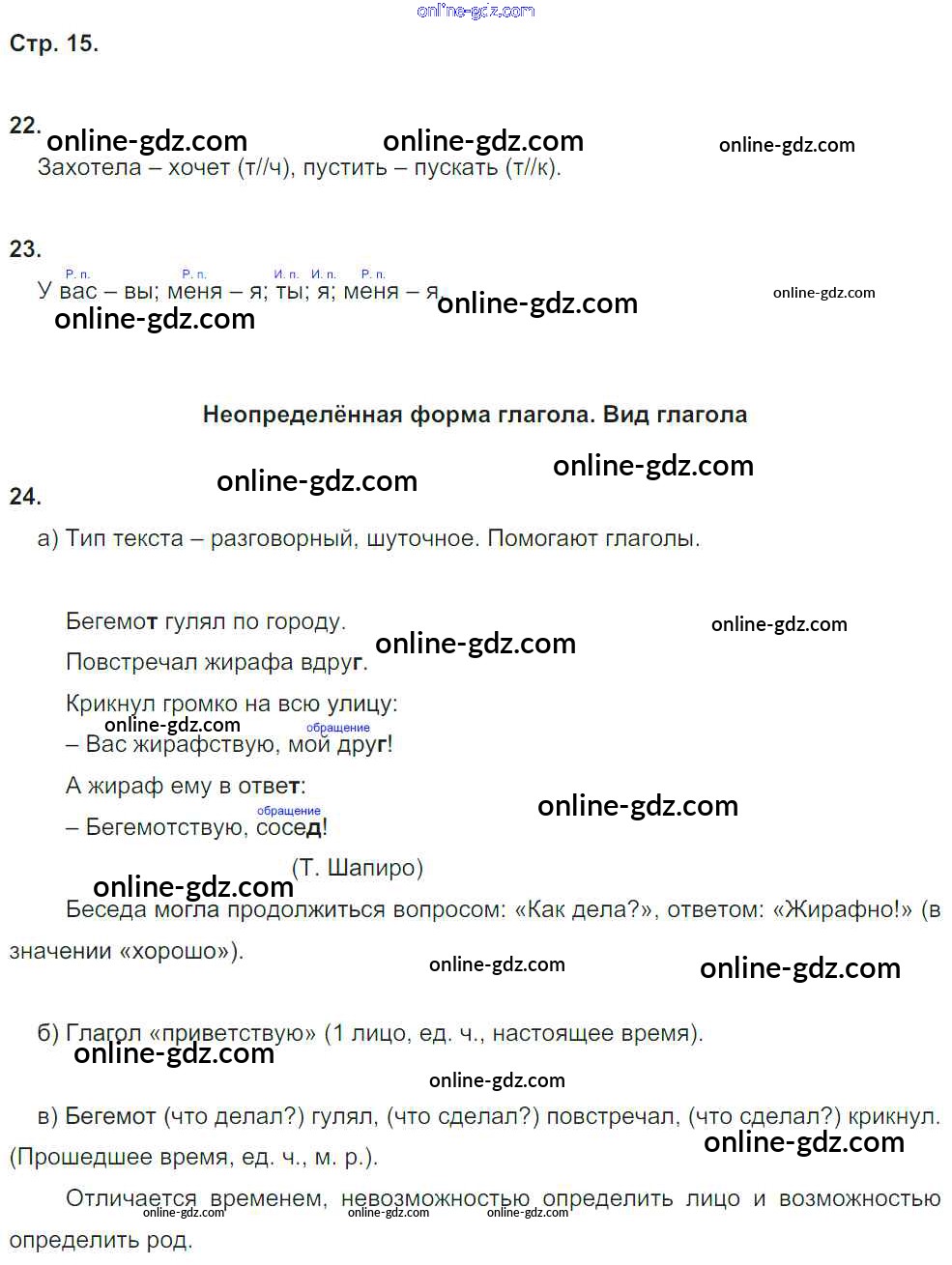 Готовые домашние задания по Русскому языку за 4 класс Рабочая тетрадь Нечаева, Воскресенская 2014 - Часть 2. Страницы тетради 15