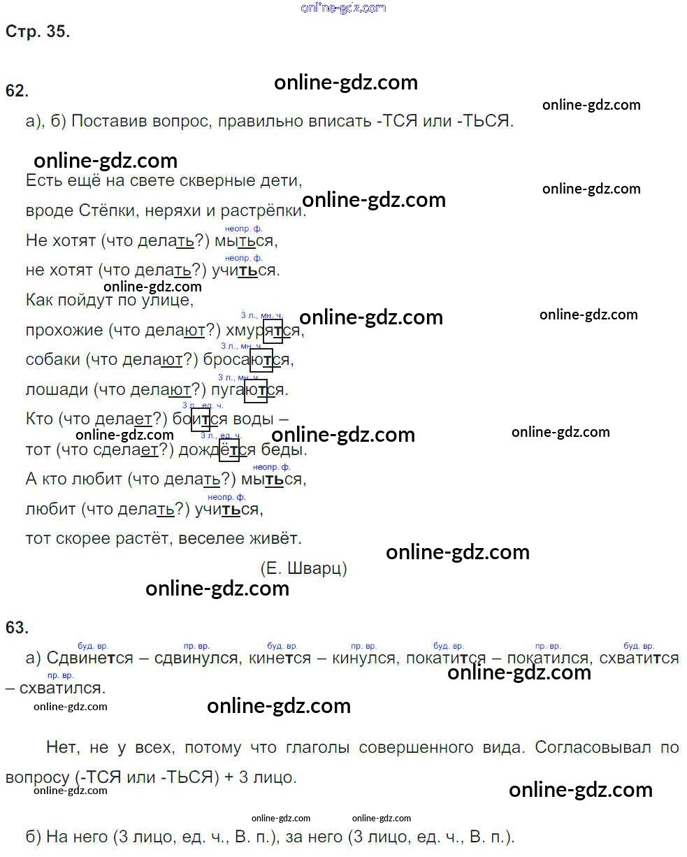 Готовые домашние задания по Русскому языку за 4 класс Рабочая тетрадь Нечаева, Воскресенская 2014 - Часть 2. Страницы тетради 35