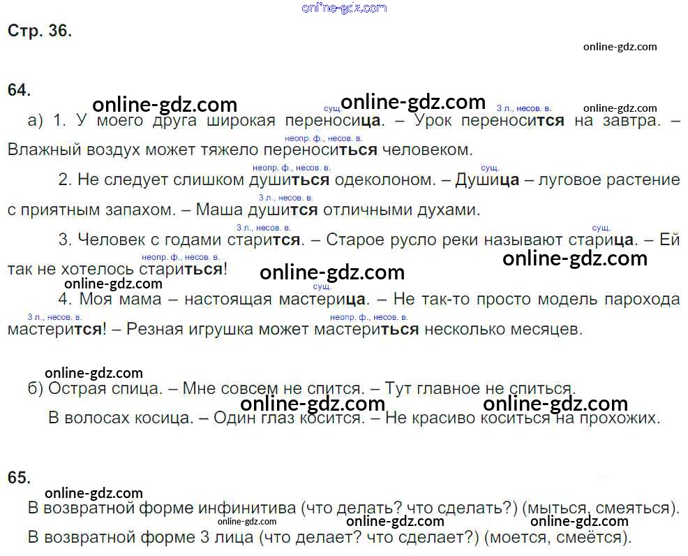 Готовые домашние задания по Русскому языку за 4 класс Рабочая тетрадь Нечаева, Воскресенская 2014 - Часть 2. Страницы тетради 36