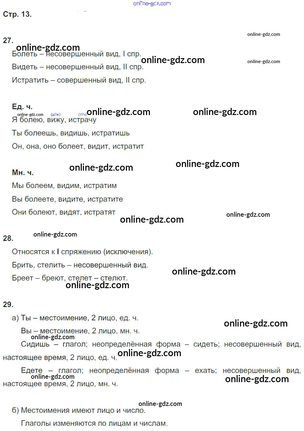 Готовые домашние задания по Русскому языку за 4 класс Рабочая тетрадь Нечаева, Воскресенская 2014 - Часть 3. Страницы тетради 13