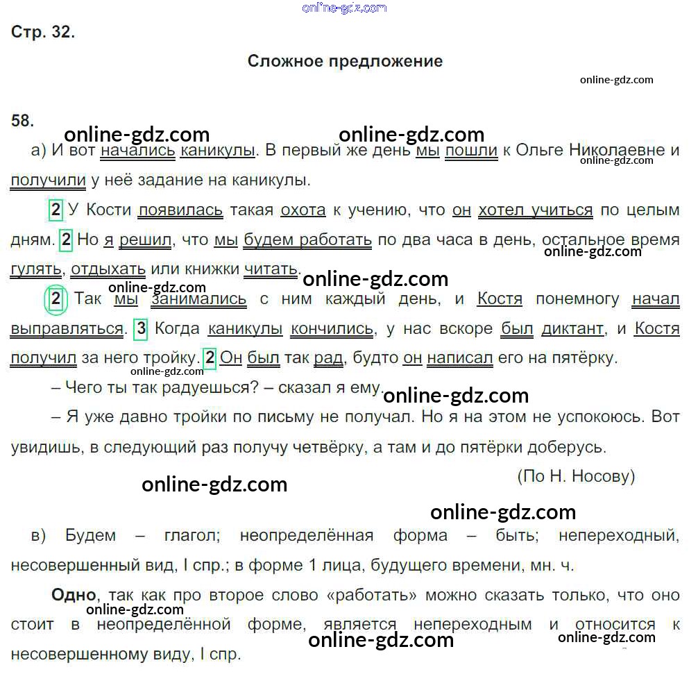 Готовые домашние задания по Русскому языку за 4 класс Рабочая тетрадь Нечаева, Воскресенская 2014 - Часть 3. Страницы тетради 32