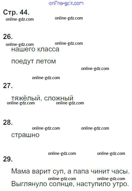 Готовые домашние задания по Русскому языку за 4 класс Рабочая тетрадь Нечаева, Воскресенская 2014 - Часть 3. Страницы тетради 44