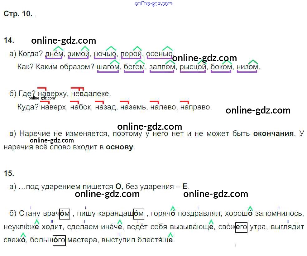 Готовые домашние задания по Русскому языку за 4 класс Рабочая тетрадь Нечаева, Воскресенская 2014 - Часть 4. Страницы тетради 10