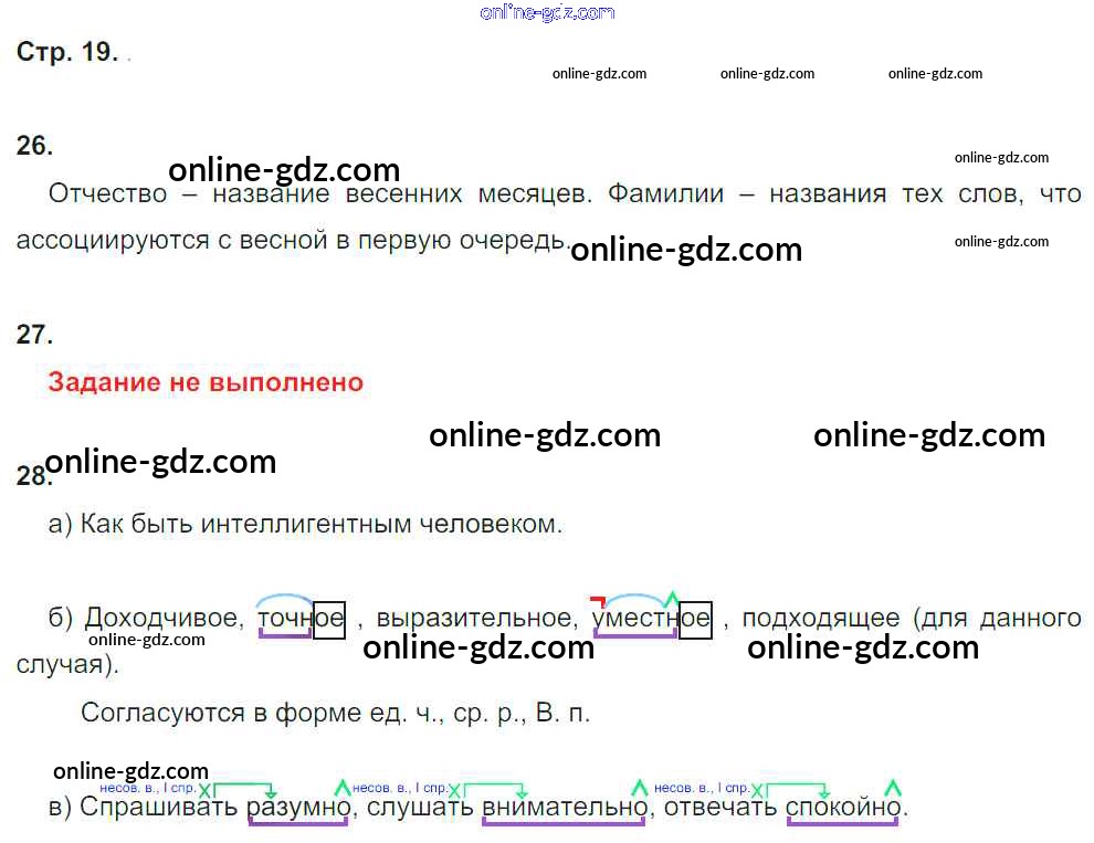 Готовые домашние задания по Русскому языку за 4 класс Рабочая тетрадь Нечаева, Воскресенская 2014 - Часть 4. Страницы тетради 19