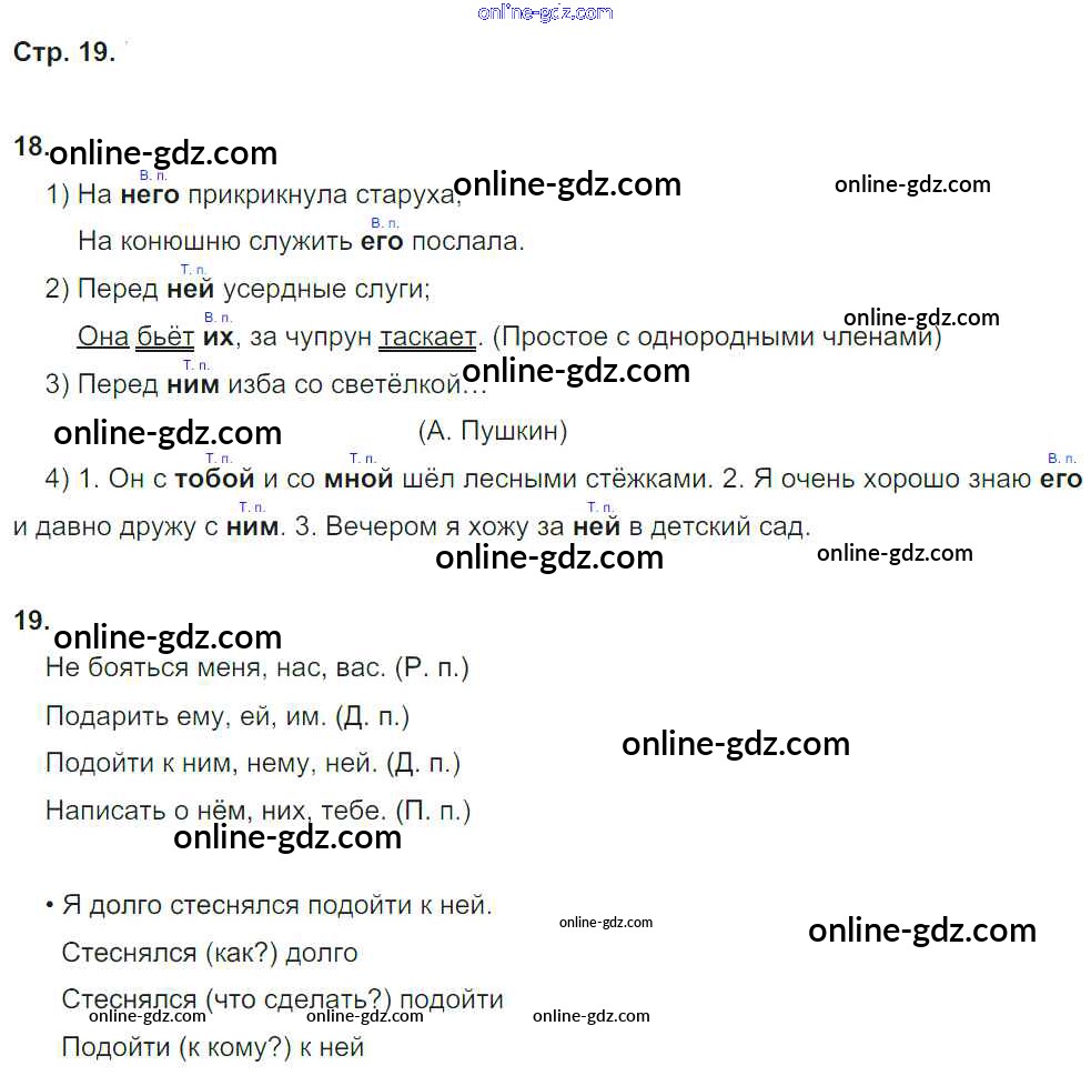 Готовые домашние задания по Русскому языку за 4 класс Рабочая тетрадь Песняева, Анащенкова УМК 2017 - Часть 1. Страницы 19