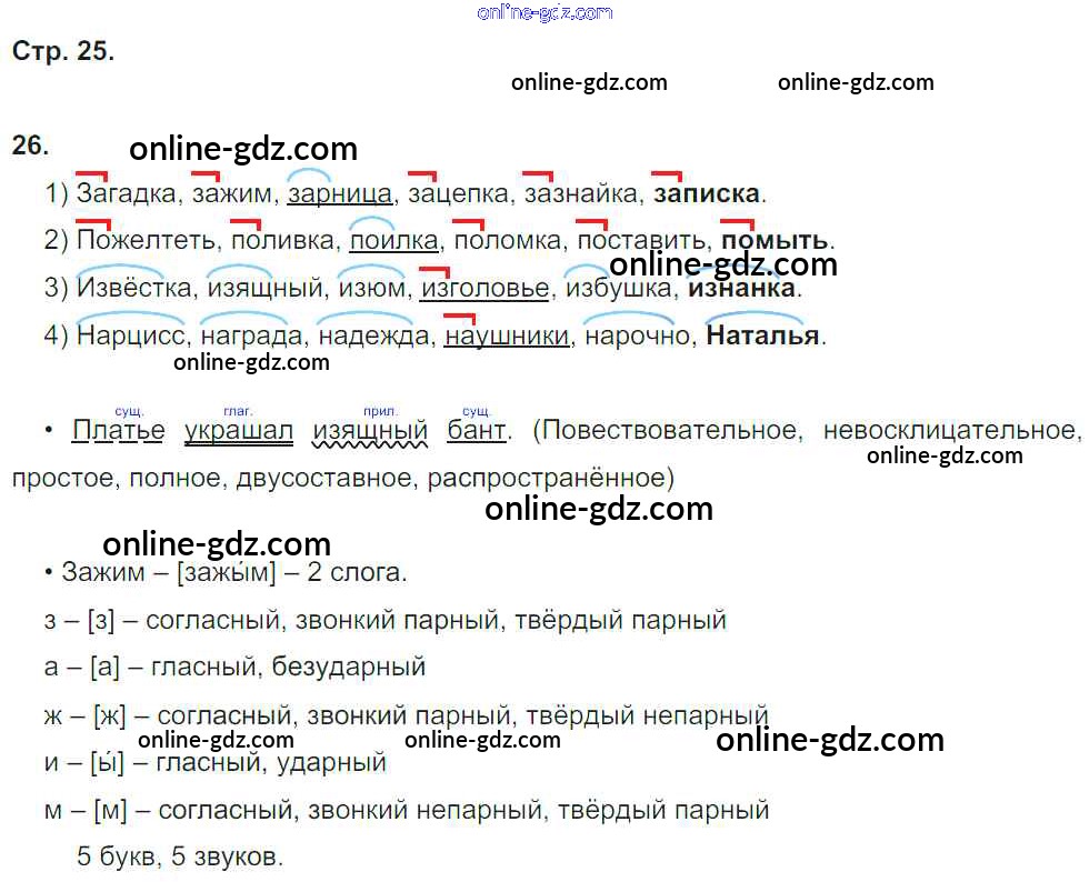 Готовые домашние задания по Русскому языку за 4 класс Рабочая тетрадь Песняева, Анащенкова УМК 2017 - Часть 1. Страницы 25