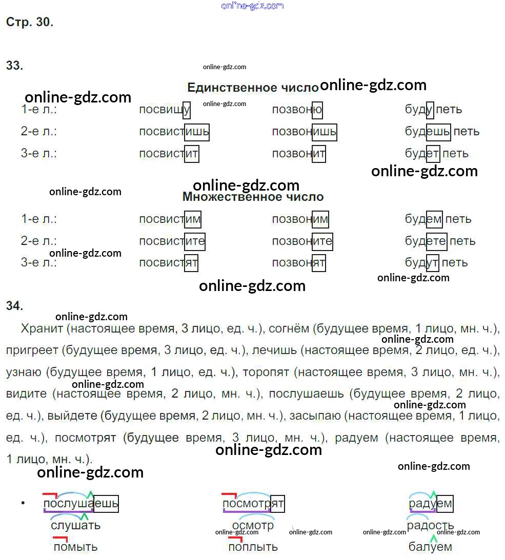 Готовые домашние задания по Русскому языку за 4 класс Рабочая тетрадь Песняева, Анащенкова УМК 2017 - Часть 1. Страницы 30