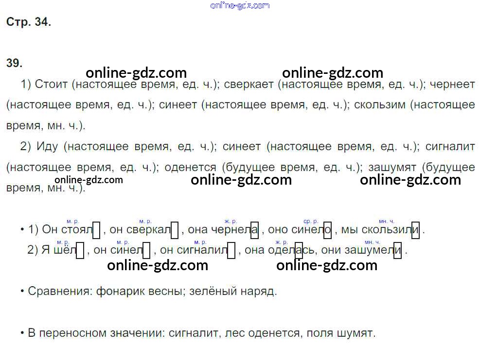 Готовые домашние задания по Русскому языку за 4 класс Рабочая тетрадь Песняева, Анащенкова УМК 2017 - Часть 1. Страницы 34
