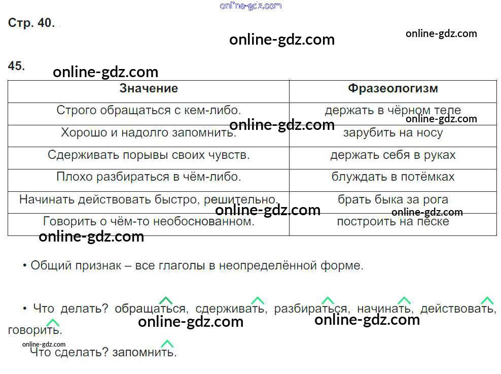 Готовые домашние задания по Русскому языку за 4 класс Рабочая тетрадь Песняева, Анащенкова УМК 2017 - Часть 1. Страницы 40