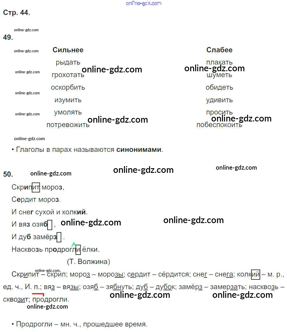 Готовые домашние задания по Русскому языку за 4 класс Рабочая тетрадь Песняева, Анащенкова УМК 2017 - Часть 1. Страницы 44