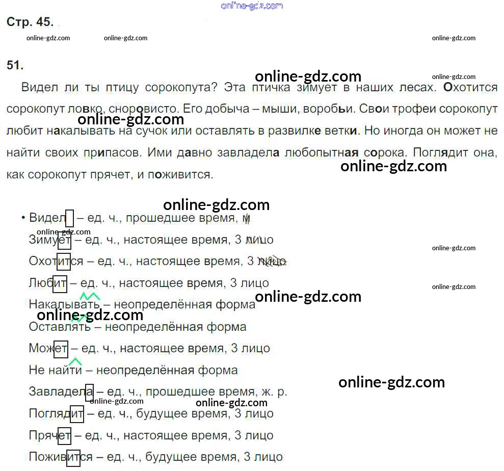Готовые домашние задания по Русскому языку за 4 класс Рабочая тетрадь Песняева, Анащенкова УМК 2017 - Часть 1. Страницы 45