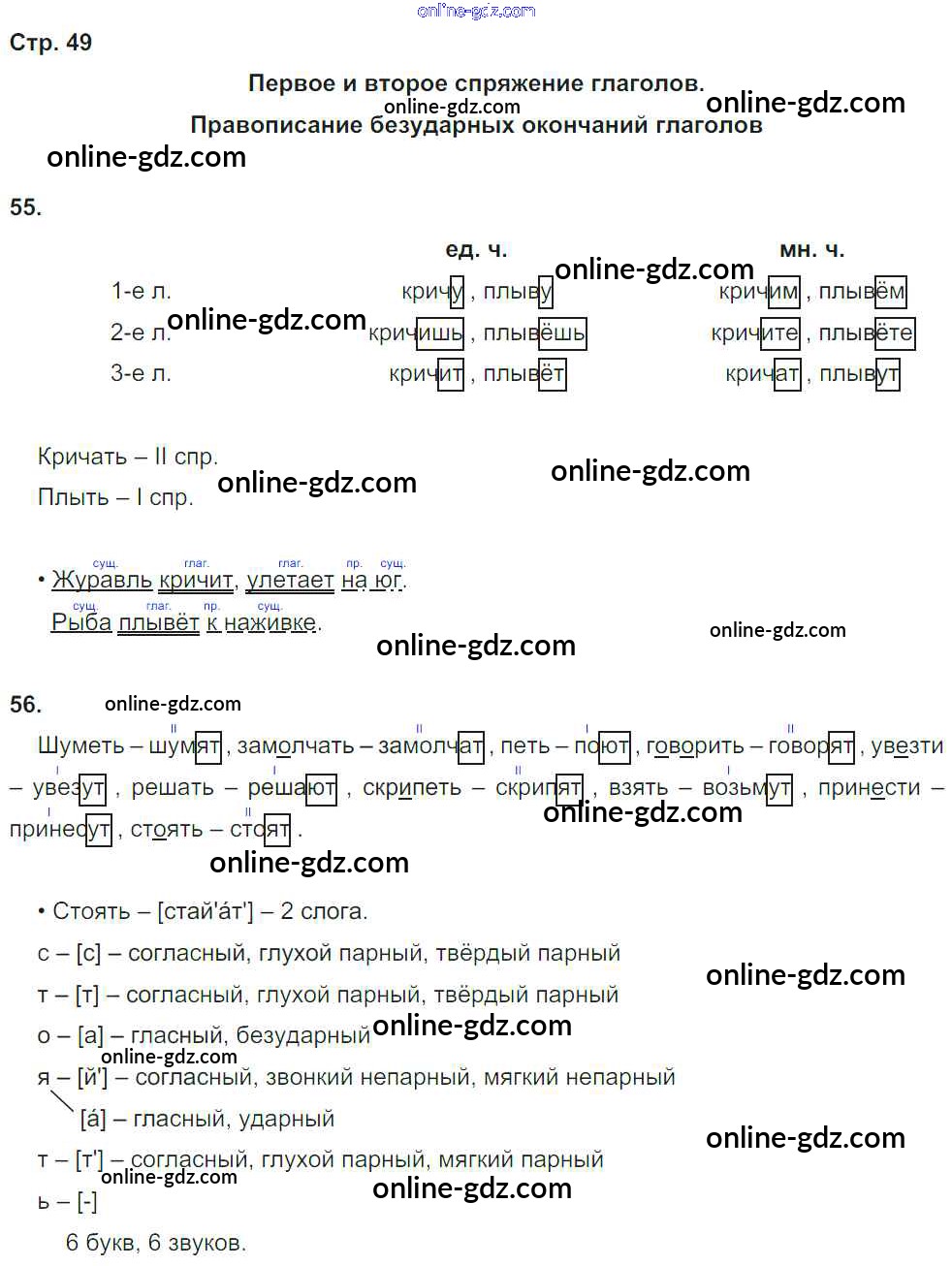 Готовые домашние задания по Русскому языку за 4 класс Рабочая тетрадь Песняева, Анащенкова УМК 2017 - Часть 1. Страницы 49