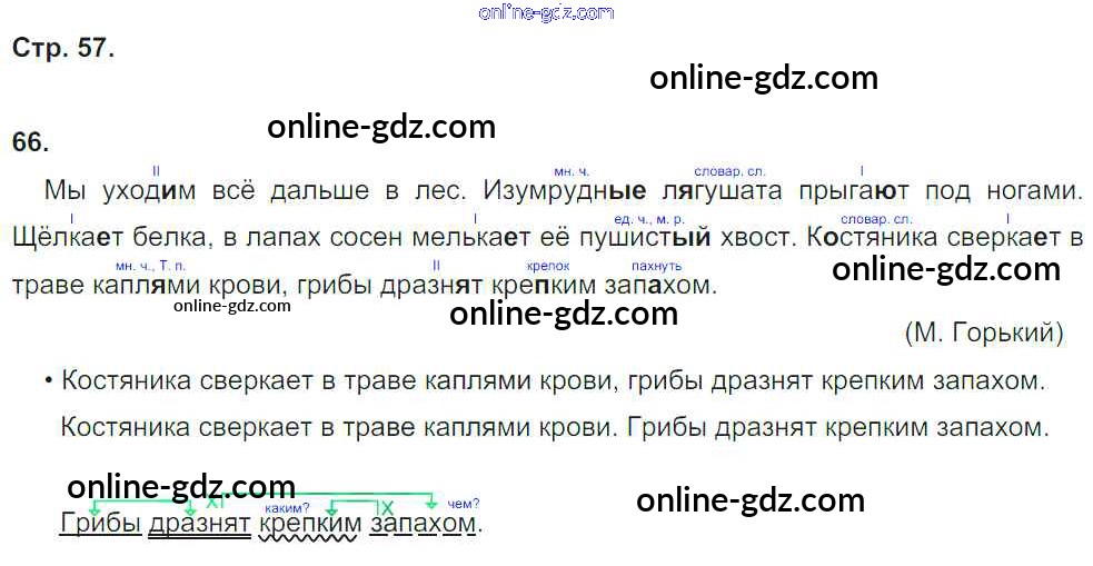 Готовые домашние задания по Русскому языку за 4 класс Рабочая тетрадь Песняева, Анащенкова УМК 2017 - Часть 1. Страницы 57