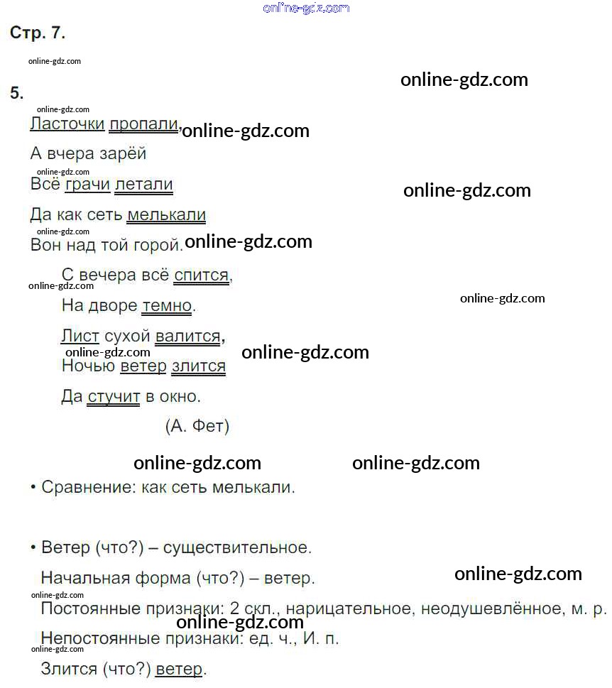 Готовые домашние задания по Русскому языку за 4 класс Рабочая тетрадь Песняева, Анащенкова УМК 2017 - Часть 1. Страницы 7