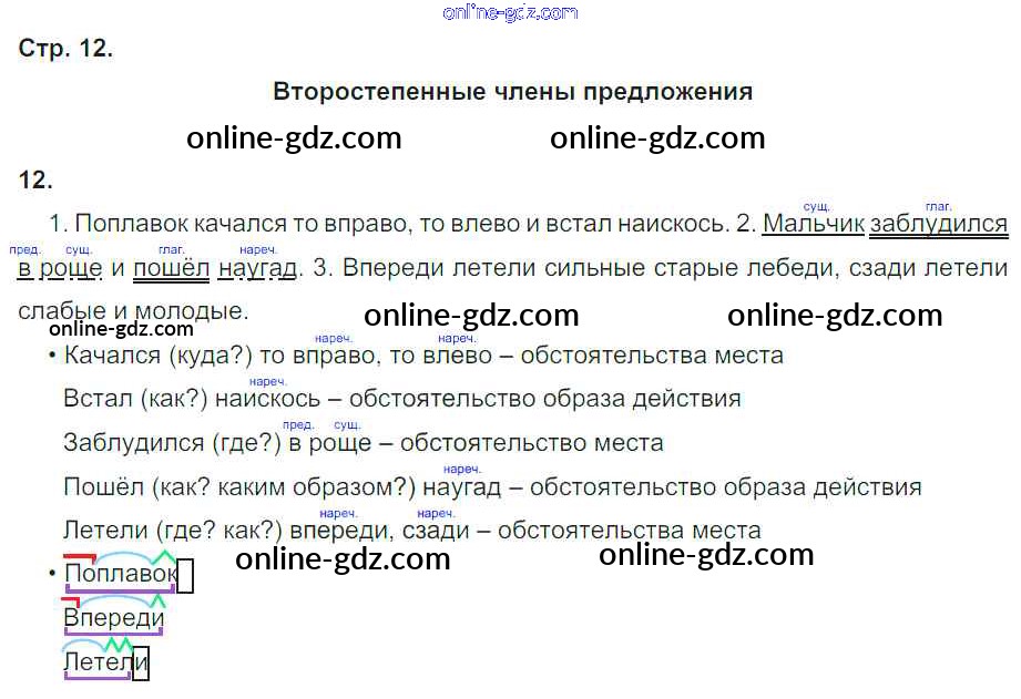 Готовые домашние задания по Русскому языку за 4 класс Рабочая тетрадь Песняева, Анащенкова УМК 2017 - Часть 2. Страницы 12