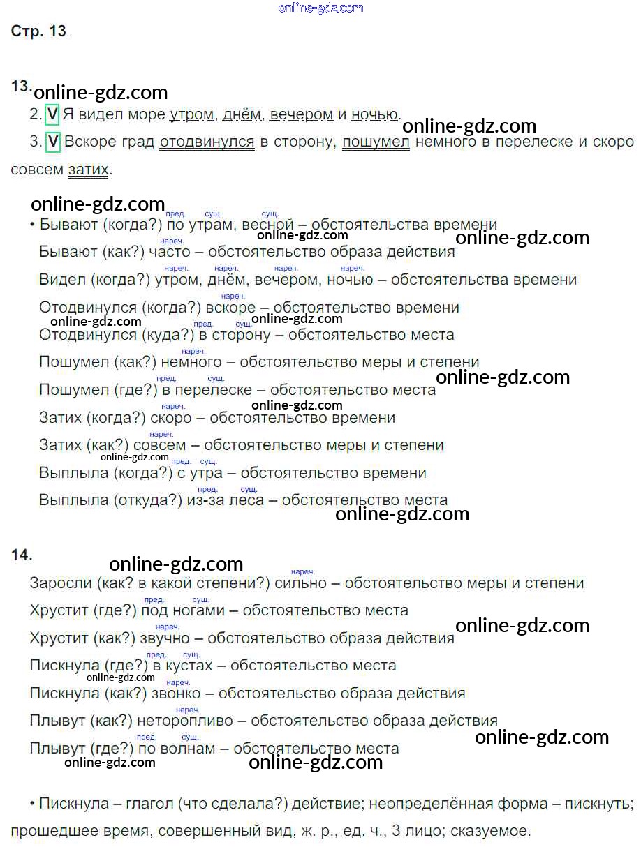 Готовые домашние задания по Русскому языку за 4 класс Рабочая тетрадь Песняева, Анащенкова УМК 2017 - Часть 2. Страницы 13