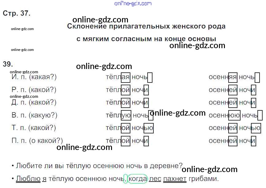 Готовые домашние задания по Русскому языку за 4 класс Рабочая тетрадь Песняева, Анащенкова УМК 2017 - Часть 2. Страницы 37