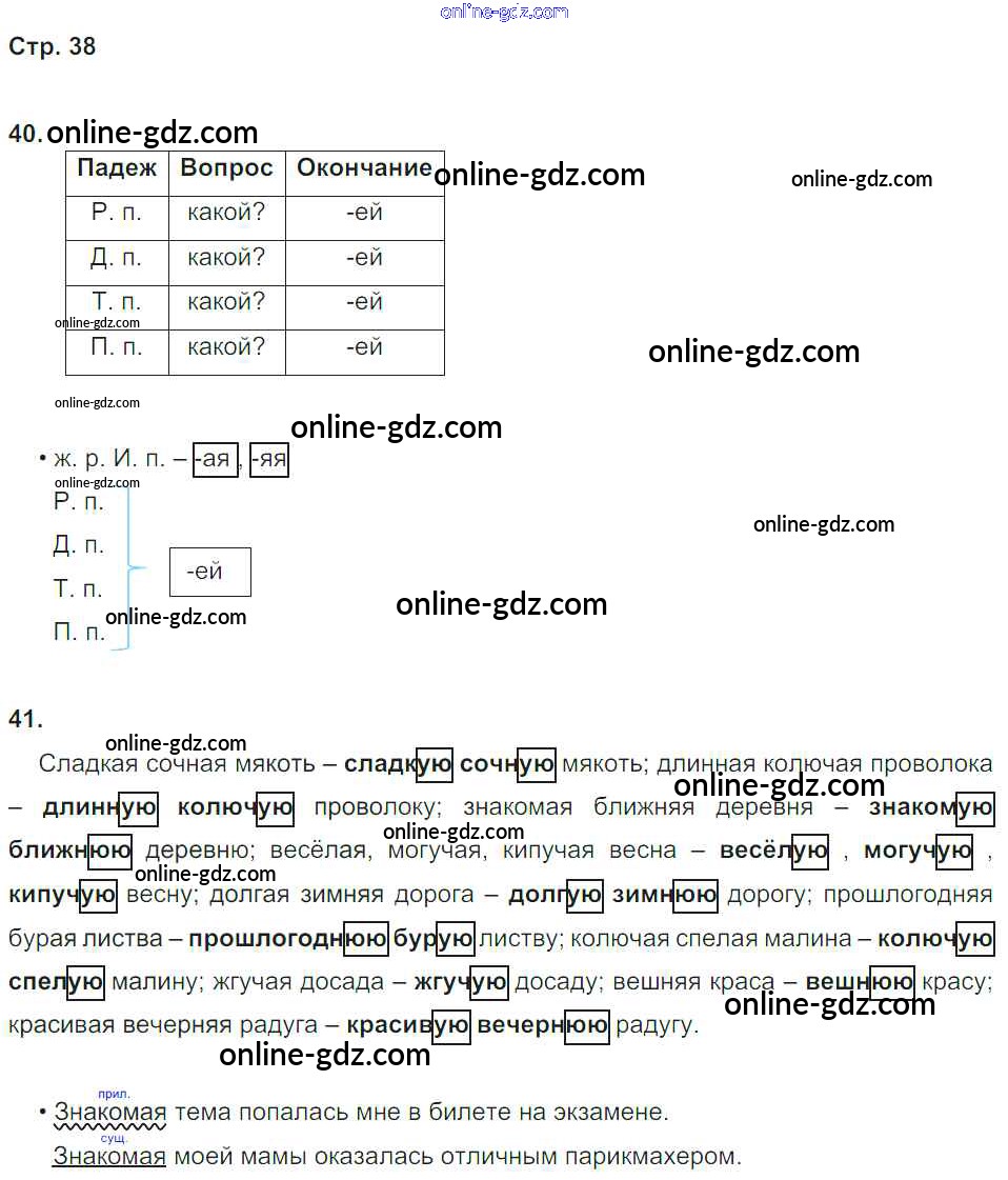 Готовые домашние задания по Русскому языку за 4 класс Рабочая тетрадь Песняева, Анащенкова УМК 2017 - Часть 2. Страницы 38