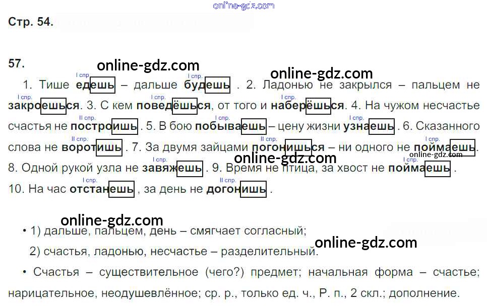Готовые домашние задания по Русскому языку за 4 класс Рабочая тетрадь Песняева, Анащенкова УМК 2017 - Часть 2. Страницы 54