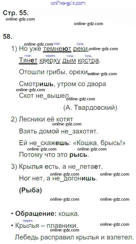 Готовые домашние задания по Русскому языку за 4 класс Рабочая тетрадь Песняева, Анащенкова УМК 2017 - Часть 2. Страницы 55
