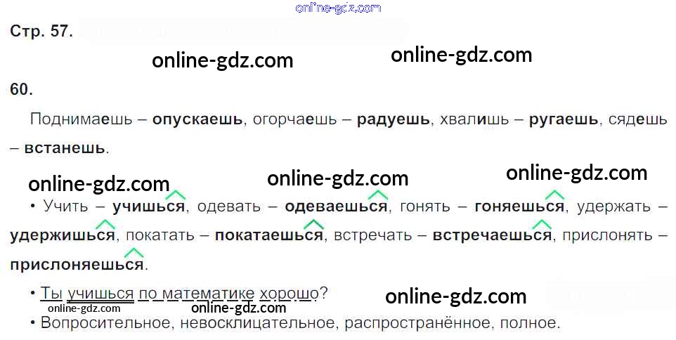 Готовые домашние задания по Русскому языку за 4 класс Рабочая тетрадь Песняева, Анащенкова УМК 2017 - Часть 2. Страницы 57