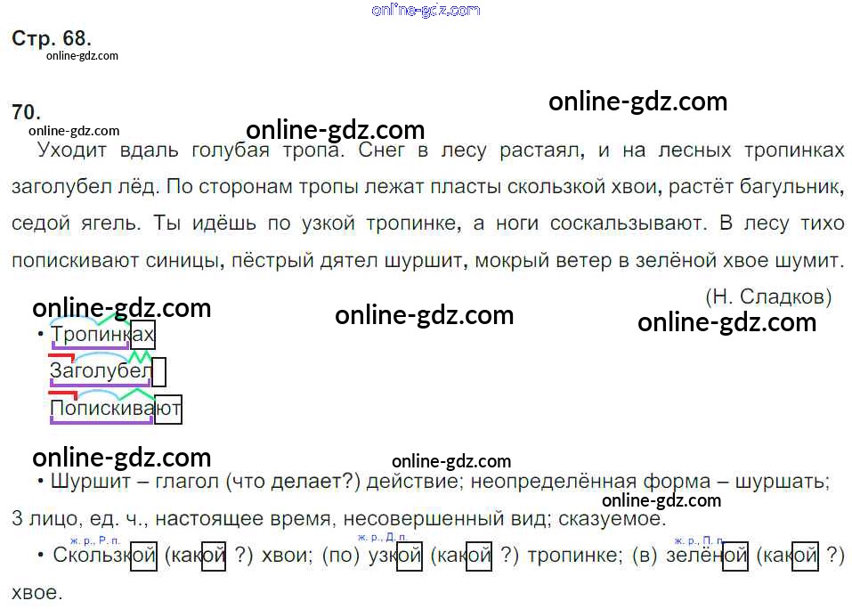 Готовые домашние задания по Русскому языку за 4 класс Рабочая тетрадь Песняева, Анащенкова УМК 2017 - Часть 2. Страницы 68