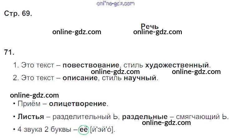 Готовые домашние задания по Русскому языку за 4 класс Рабочая тетрадь Песняева, Анащенкова УМК 2017 - Часть 2. Страницы 69