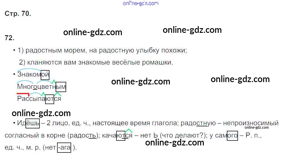 Готовые домашние задания по Русскому языку за 4 класс Рабочая тетрадь Песняева, Анащенкова УМК 2017 - Часть 2. Страницы 70