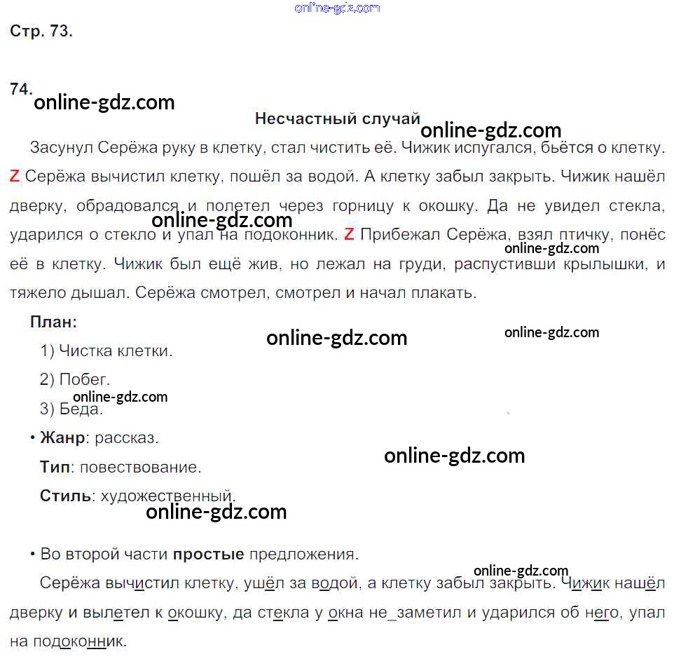 Готовые домашние задания по Русскому языку за 4 класс Рабочая тетрадь Песняева, Анащенкова УМК 2017 - Часть 2. Страницы 73