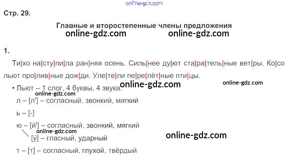 Готовые домашние задания по Русскому языку за 4 класс Рабочая тетрадь Тихомирова УМК 2016 - Часть 1. Страницы 29