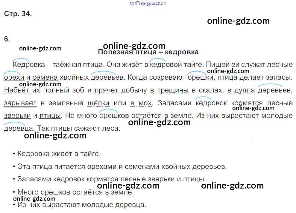 Готовые домашние задания по Русскому языку за 4 класс Рабочая тетрадь Тихомирова УМК 2016 - Часть 1. Страницы 34
