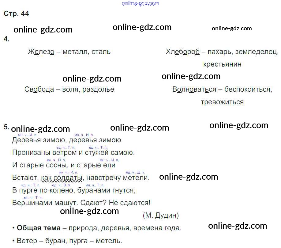 Готовые домашние задания по Русскому языку за 4 класс Рабочая тетрадь Тихомирова УМК 2016 - Часть 1. Страницы 44