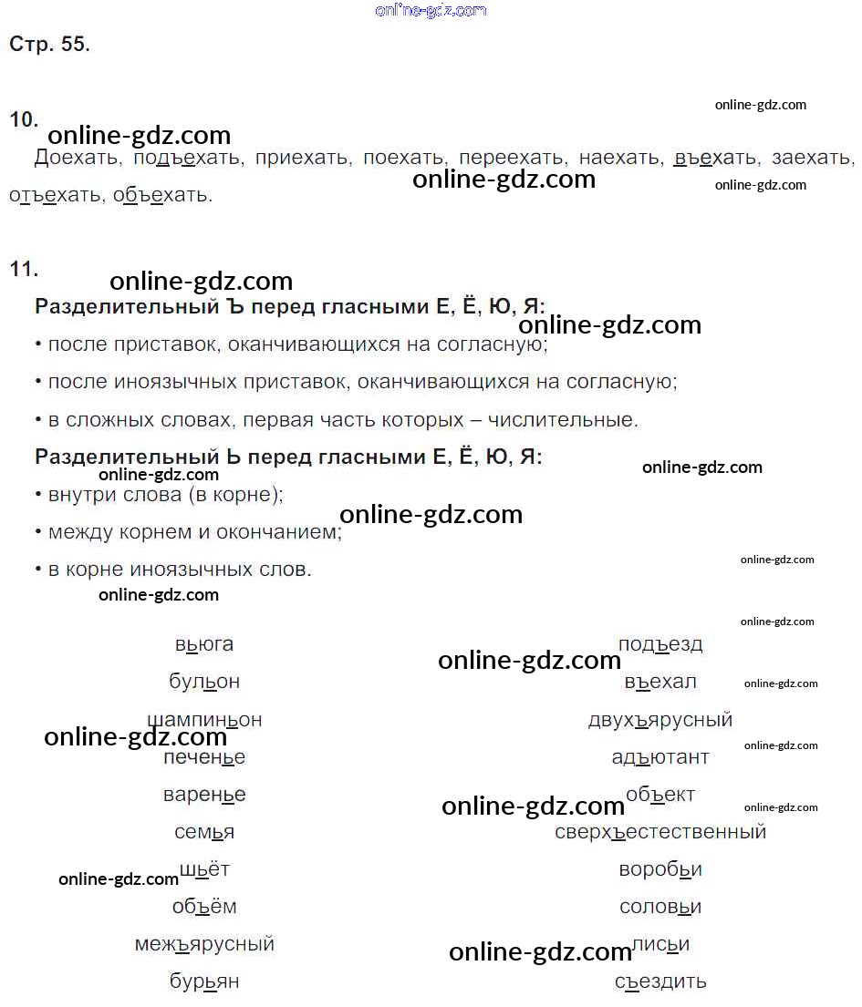 Готовые домашние задания по Русскому языку за 4 класс Рабочая тетрадь Тихомирова УМК 2016 - Часть 1. Страницы 55
