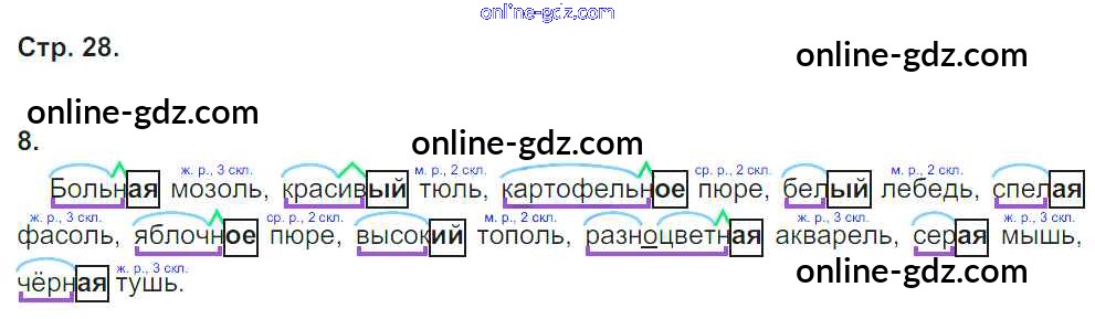 Готовые домашние задания по Русскому языку за 4 класс Рабочая тетрадь Тихомирова УМК 2016 - Часть 2. Страницы 28