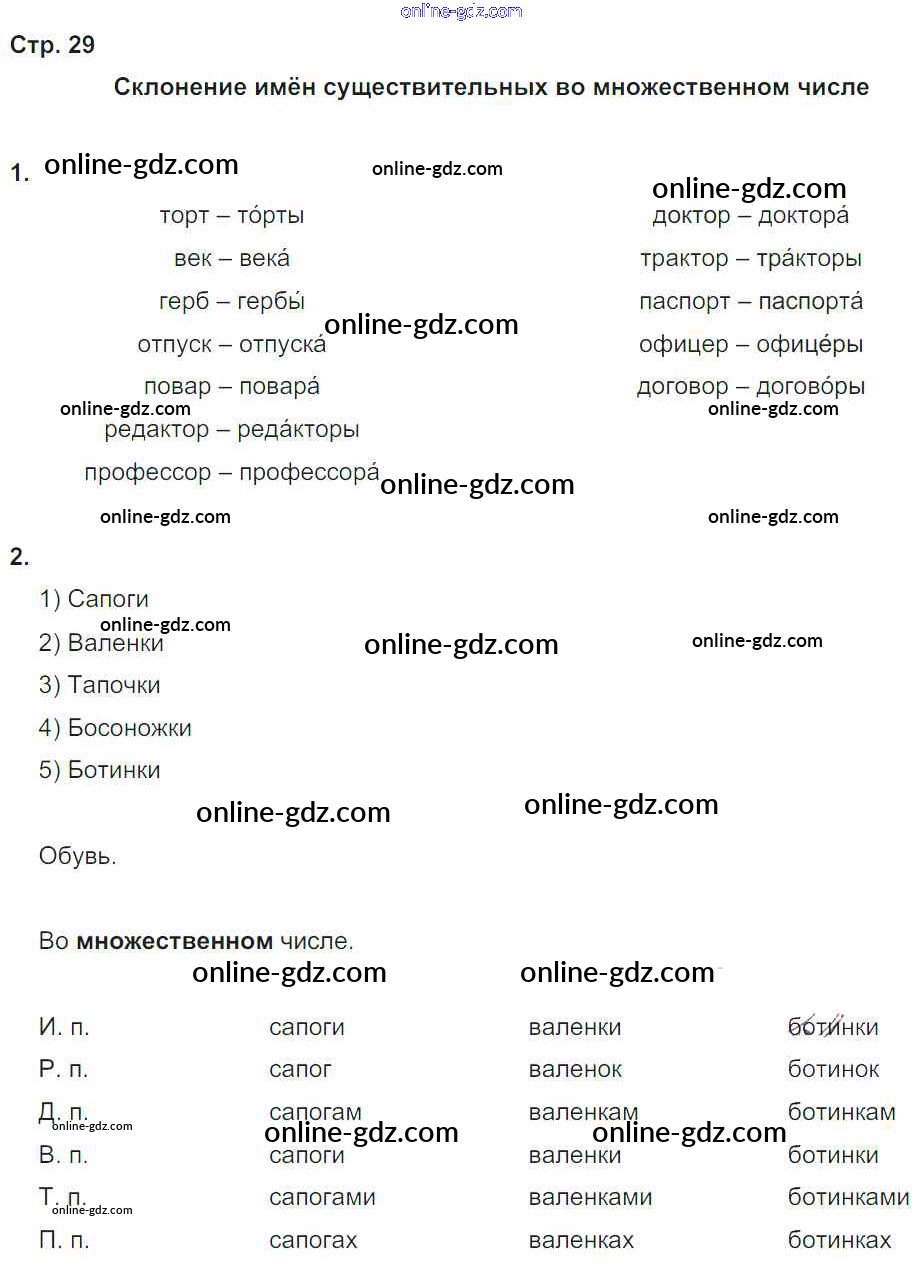 Готовые домашние задания по Русскому языку за 4 класс Рабочая тетрадь Тихомирова УМК 2016 - Часть 2. Страницы 29
