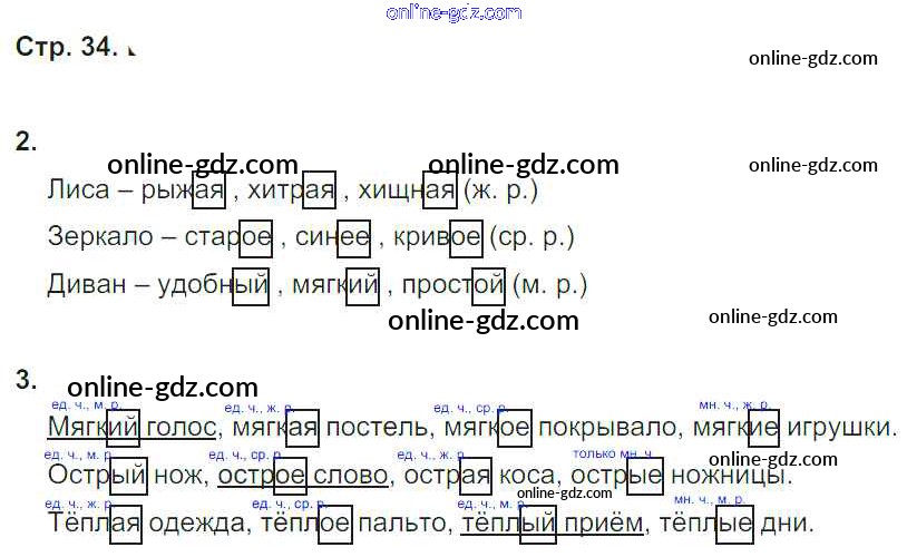 Готовые домашние задания по Русскому языку за 4 класс Рабочая тетрадь Тихомирова УМК 2016 - Часть 2. Страницы 34