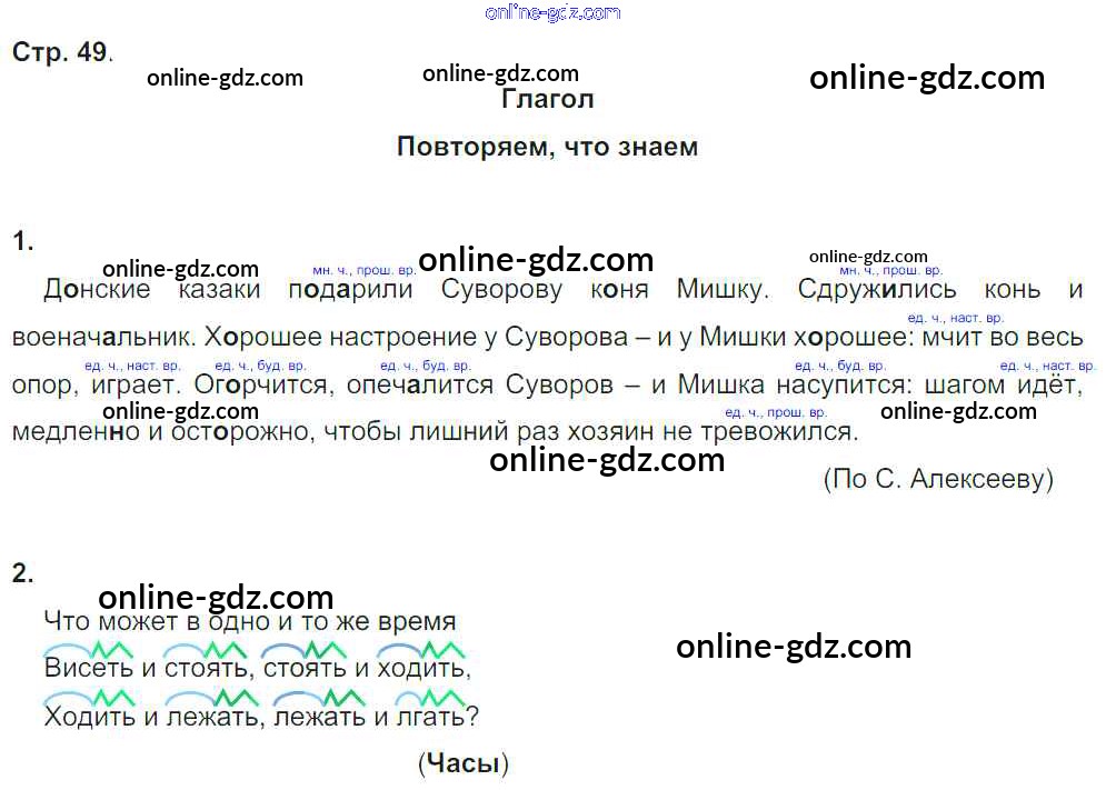 Готовые домашние задания по Русскому языку за 4 класс Рабочая тетрадь Тихомирова УМК 2016 - Часть 2. Страницы 49