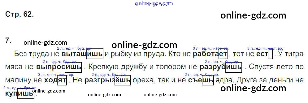 Готовые домашние задания по Русскому языку за 4 класс Рабочая тетрадь Тихомирова УМК 2016 - Часть 2. Страницы 62