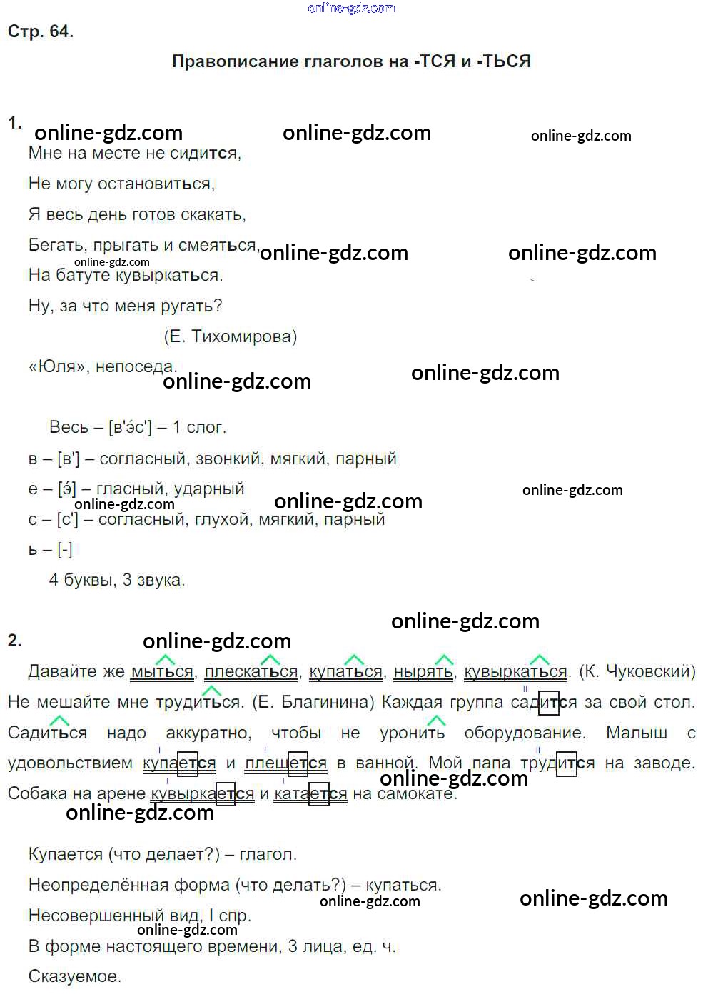 Готовые домашние задания по Русскому языку за 4 класс Рабочая тетрадь Тихомирова УМК 2016 - Часть 2. Страницы 64