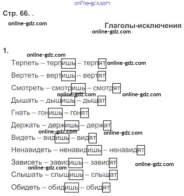 Готовые домашние задания по Русскому языку за 4 класс Рабочая тетрадь Тихомирова УМК 2016 - Часть 2. Страницы 66