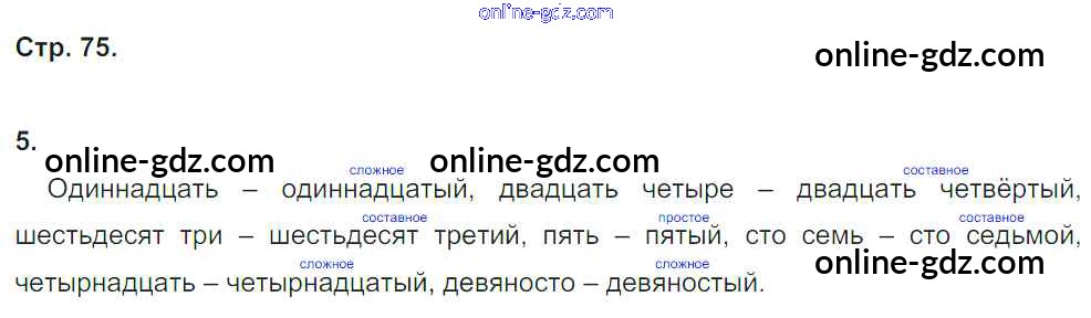 Готовые домашние задания по Русскому языку за 4 класс Рабочая тетрадь Тихомирова УМК 2016 - Часть 2. Страницы 75
