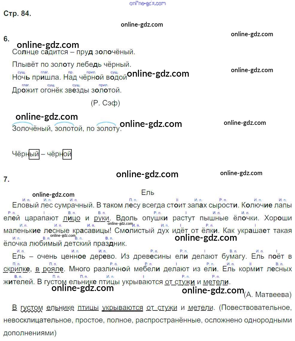 Готовые домашние задания по Русскому языку за 4 класс Рабочая тетрадь Тихомирова УМК 2016 - Часть 2. Страницы 84