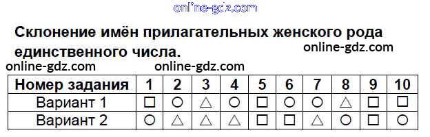 Готовые домашние задания по Русскому языку за 4 класс Тесты Тихомирова УМК 2014 - Часть 2 Тесты Тест №1. Склонение имён прилагательных женского рода единственного числа