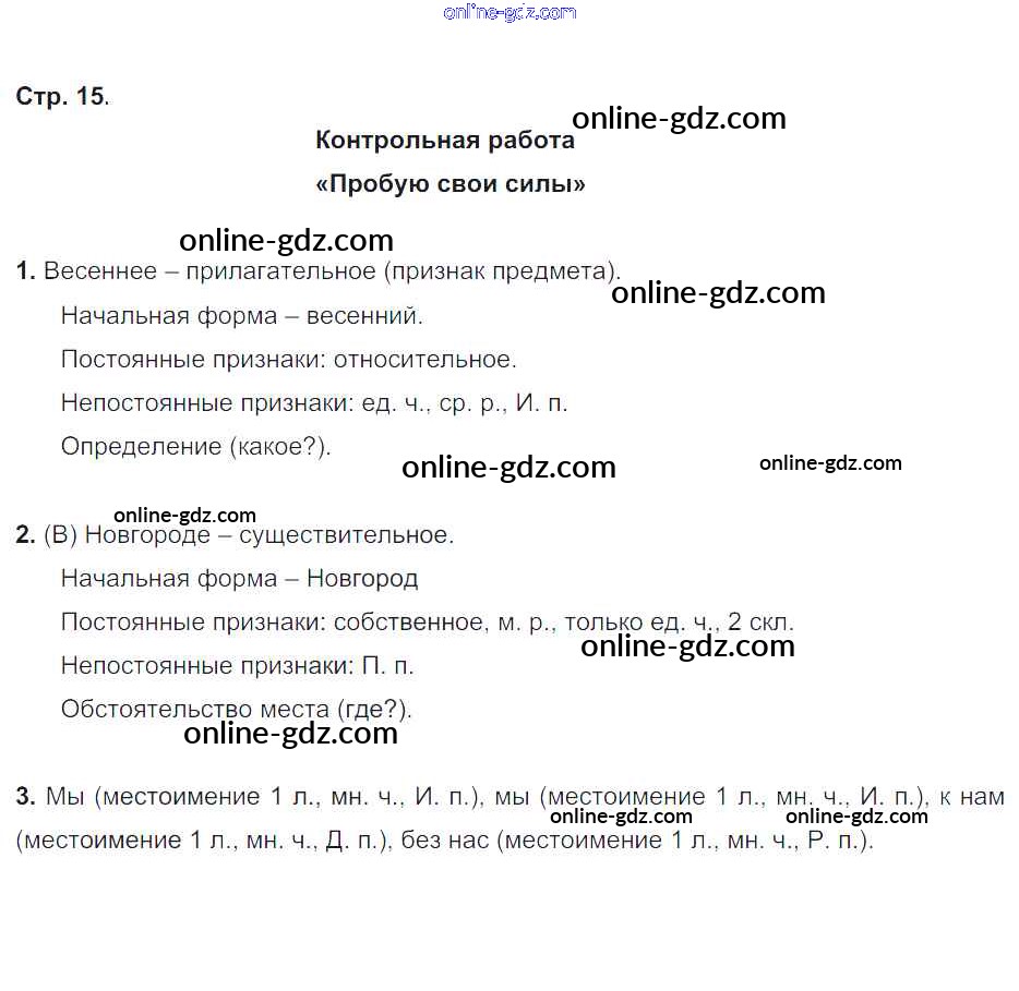 Готовые домашние задания по Русскому языку за 4 класс Тетрадь для контрольных работ Романова, Петленко Начальная школа XXI века 2018 - Страницы 15