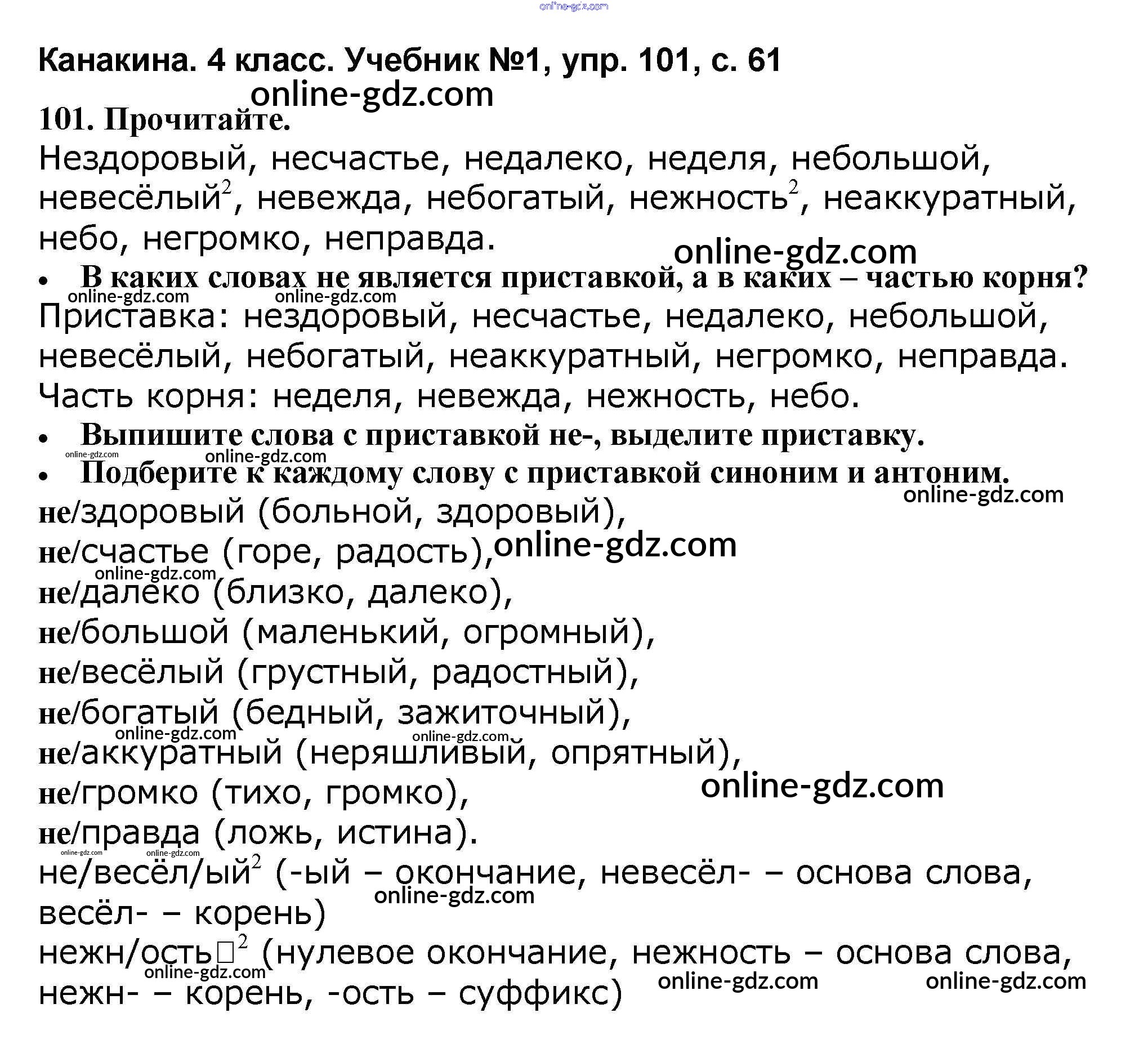 Готовые домашние задания по Русскому языку за 4 класс Учебник Канакина, Горецкий Школа России 2015 - Часть 1 101