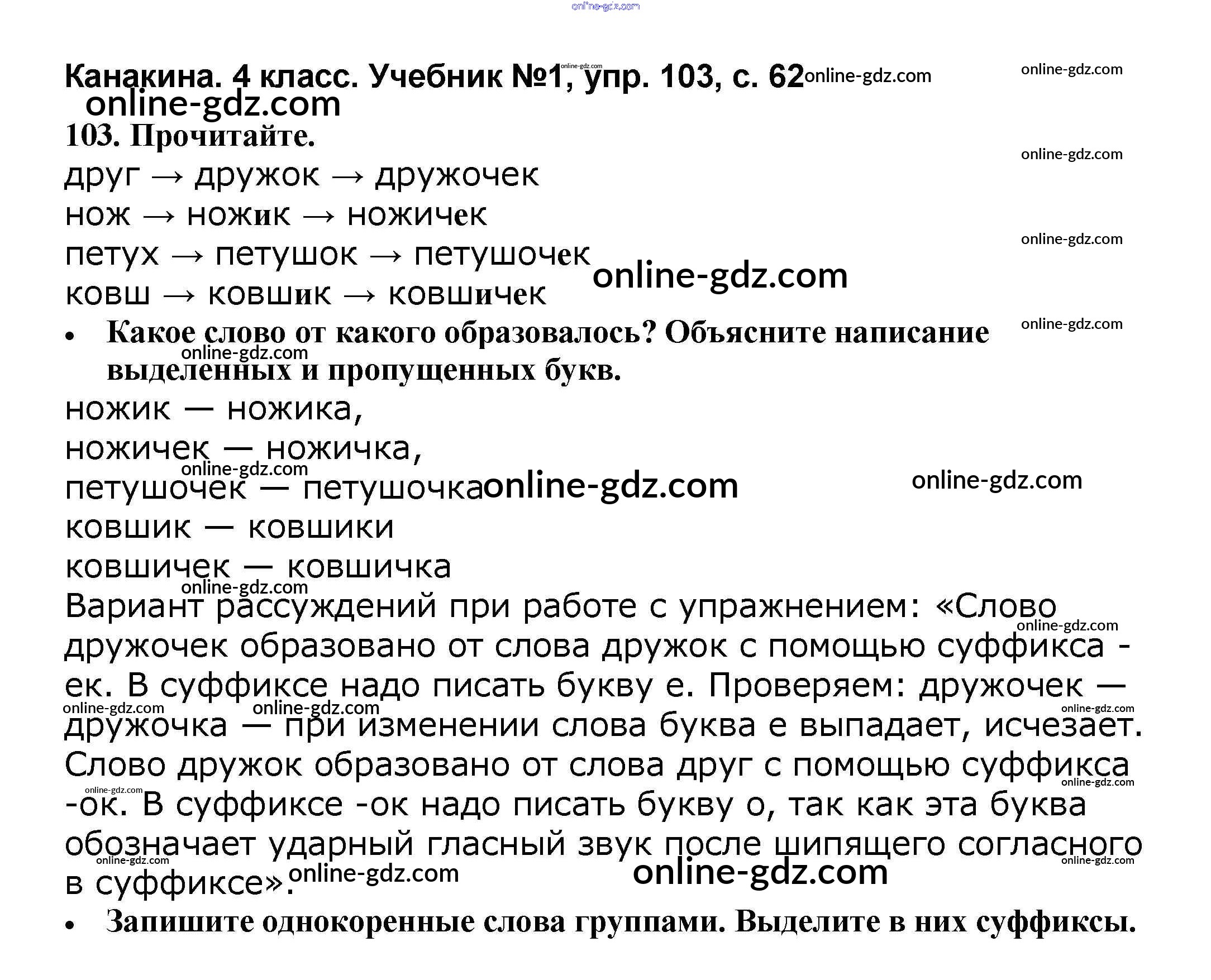 Готовые домашние задания по Русскому языку за 4 класс Учебник Канакина, Горецкий Школа России 2015 - Часть 1 103