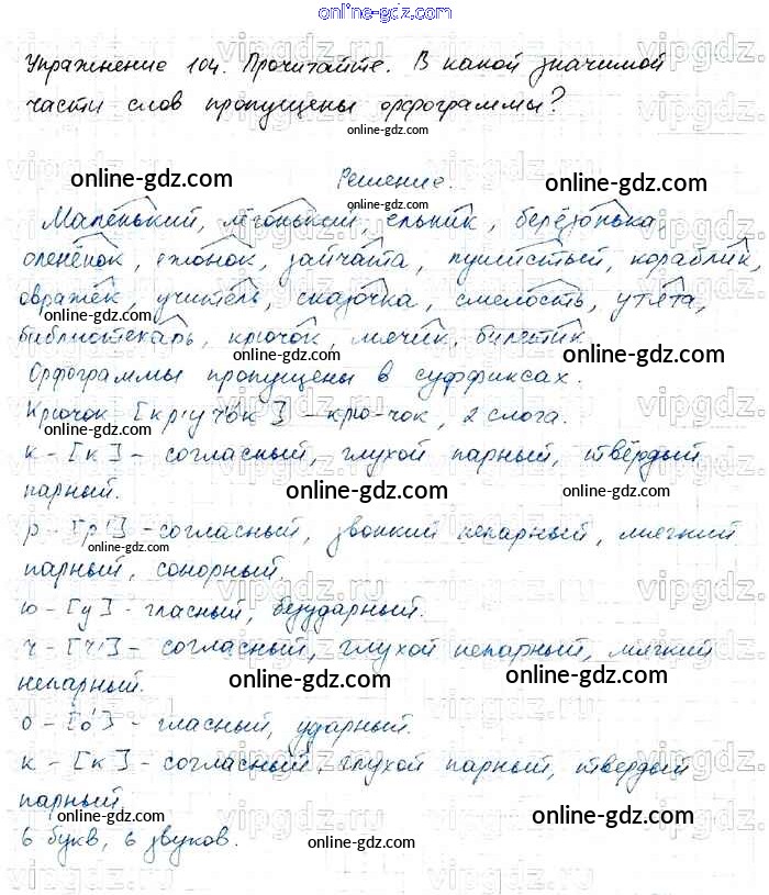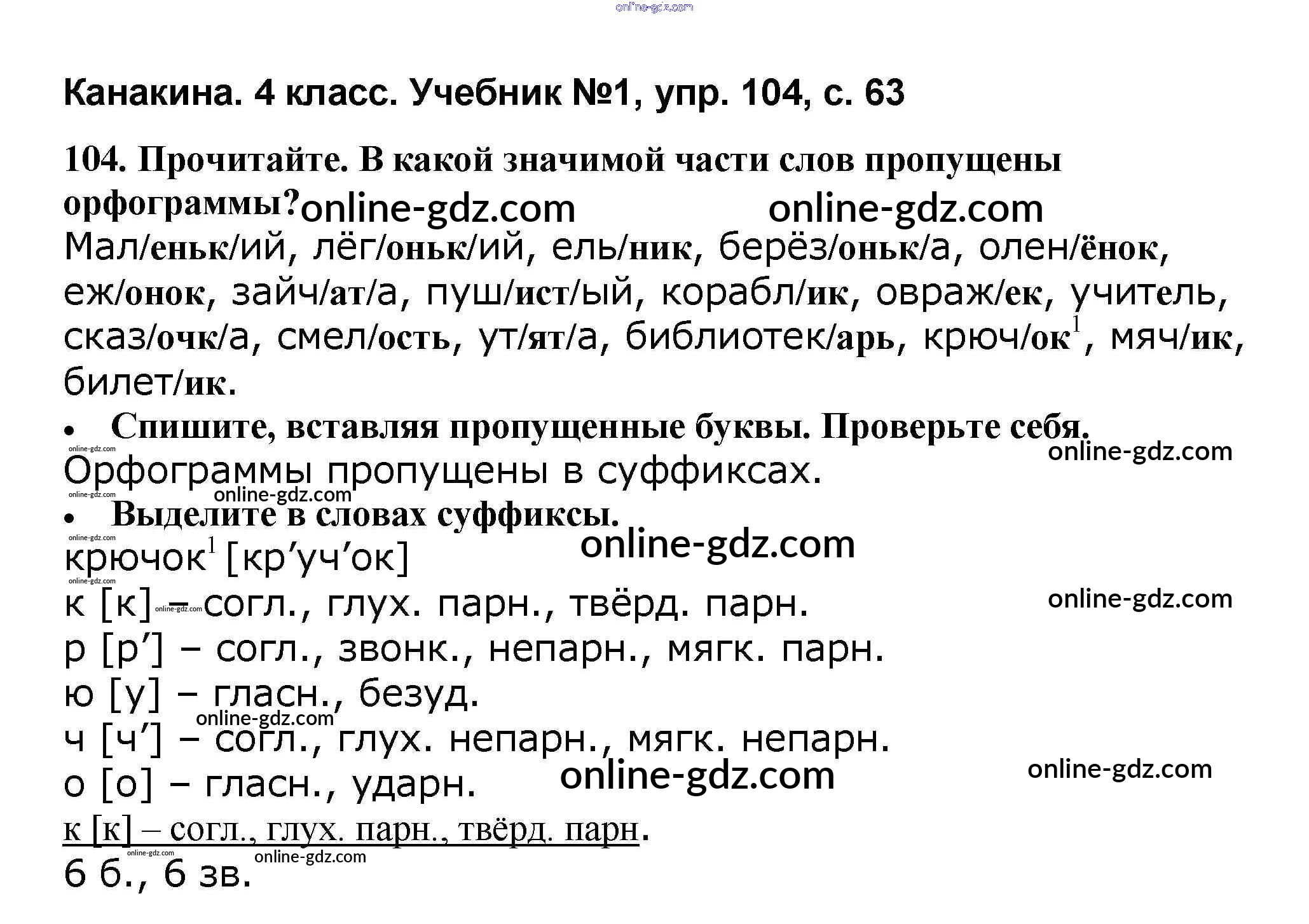 Готовые домашние задания по Русскому языку за 4 класс Учебник Канакина, Горецкий Школа России 2015 - Часть 1 104