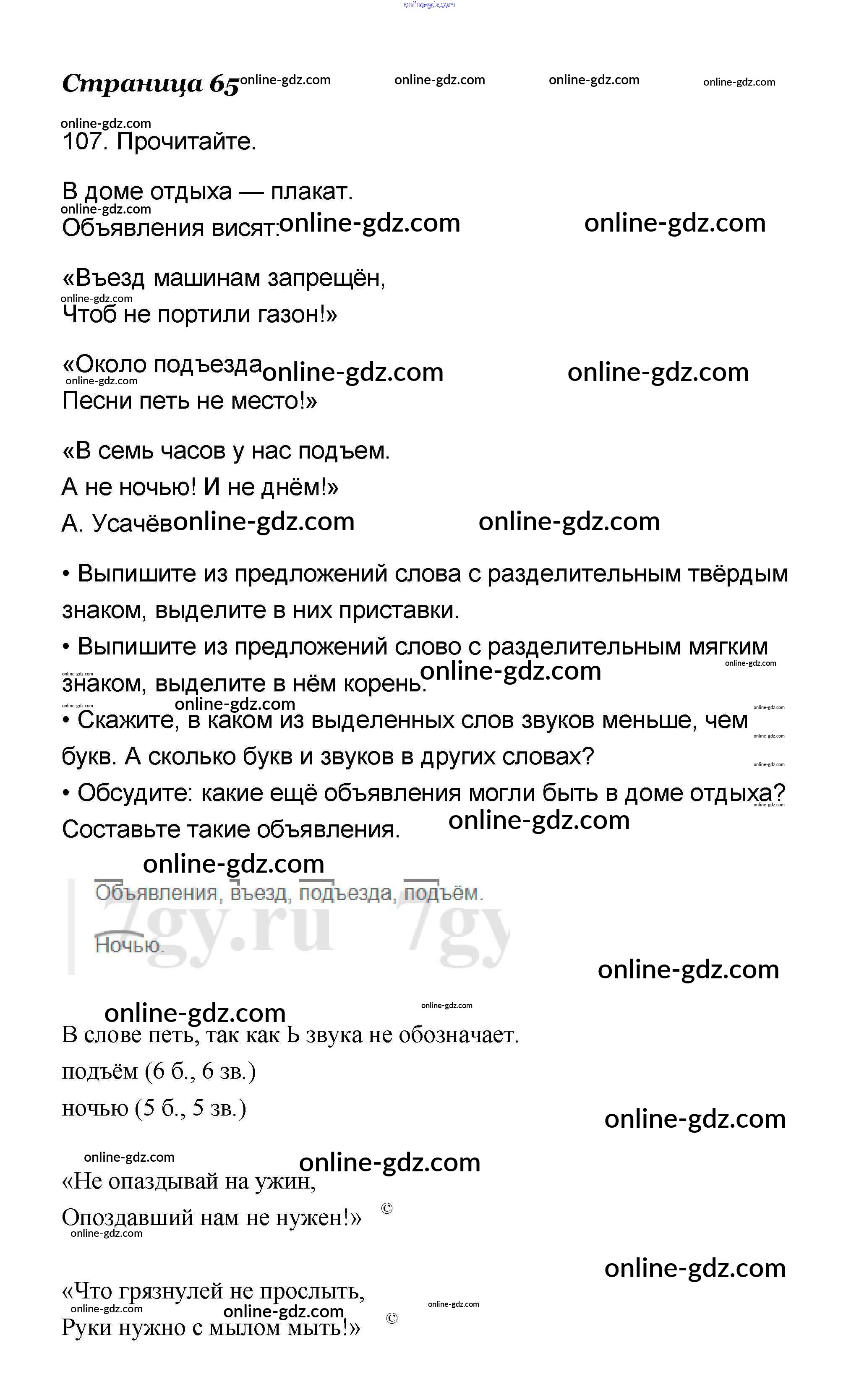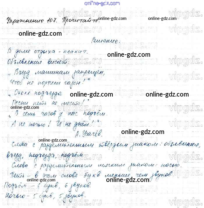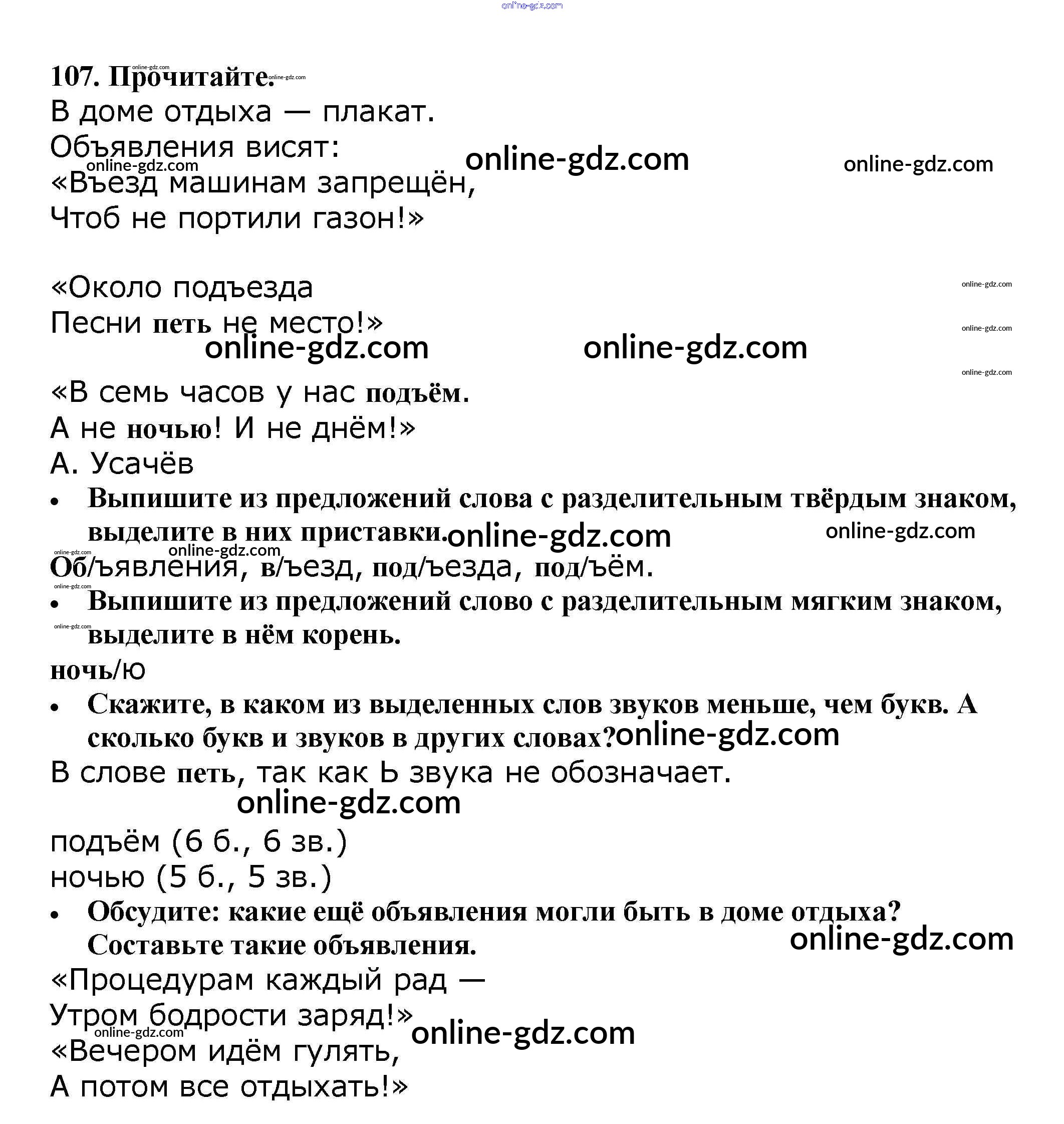 Готовые домашние задания по Русскому языку за 4 класс Учебник Канакина, Горецкий Школа России 2015 - Часть 1 107